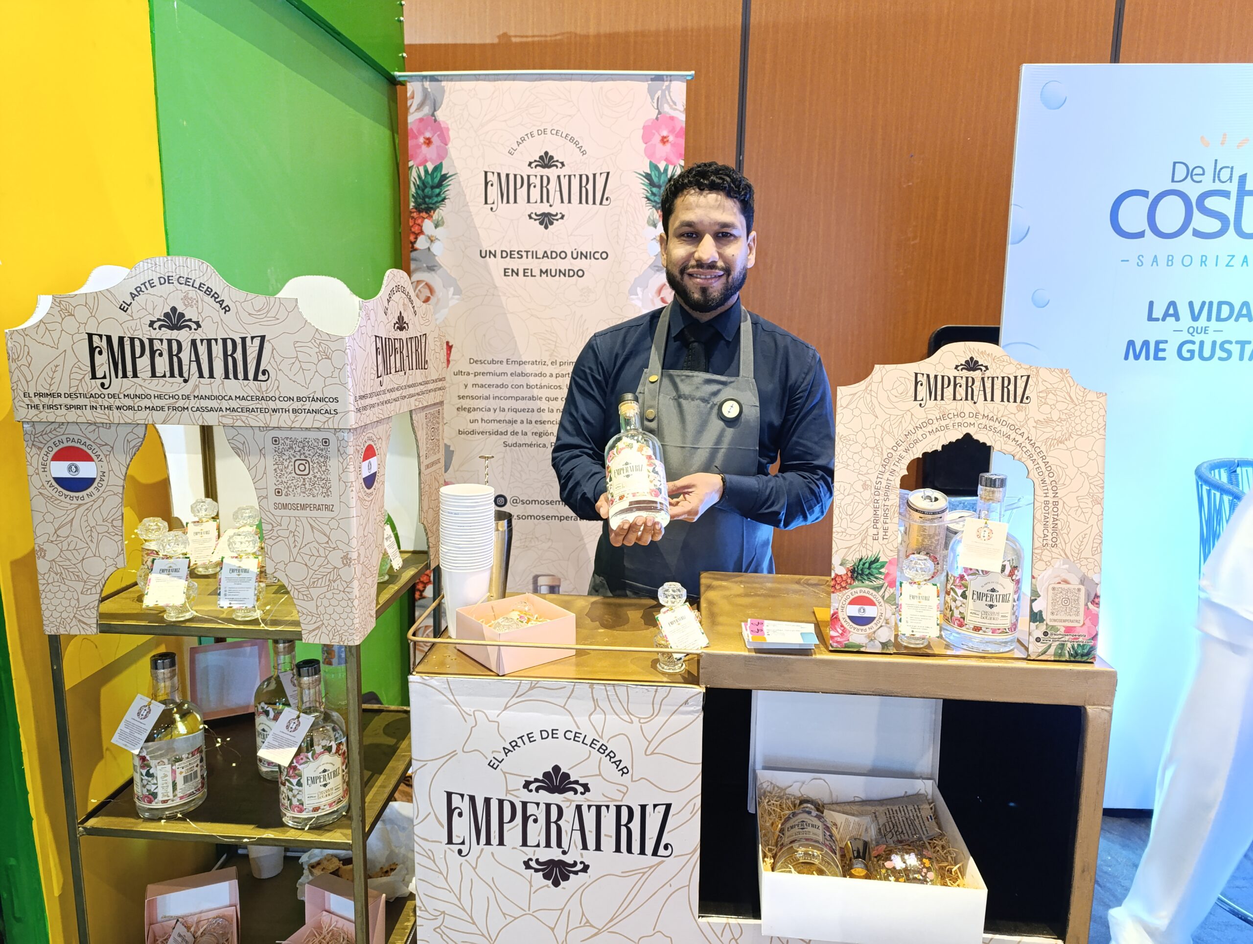Emperatriz se presentó en la Expo con una propuesta singular: el primer y único destilado de mandioca en el mundo, elaborado en Paraguay. La marca busca posicionarse en el mercado mostrando la versatilidad de su producto y la identidad que transmite a través de su origen.